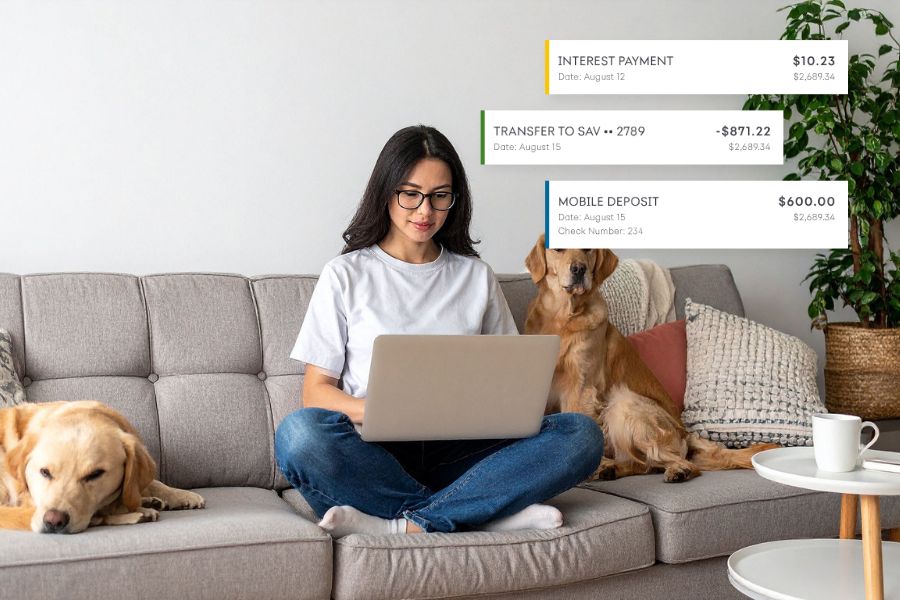 Most banks allow instant online transfers. You can move cash to checking or external accounts, usually within a business day.